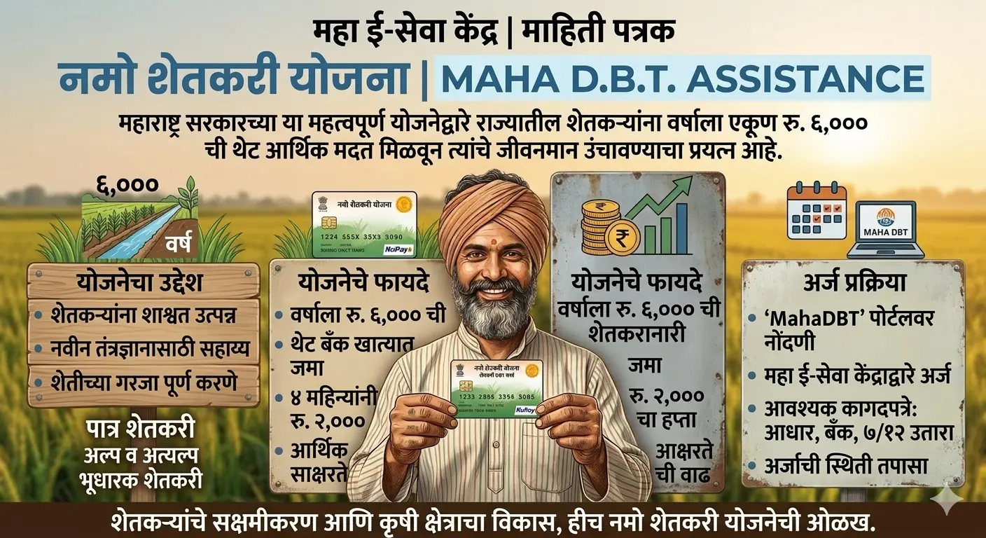 नमो शेतकरी योजना राज्यातील लहान व गरजू शेतकऱ्यांना थेट आर्थिक मदत देऊन शेतीचा खर्च कमी करण्यास आणि उत्पादनक्षमता टिकवून ठेवण्यास या योजनेची मदत होत असल्याचे चित्र दिसत आहे. महाराष्ट्रातील शेतकरी हा राज्याच्या अर्थव्यवस्थेचा कणा मानला जातो. पाऊस, बाजारभाव, बियाणे, खते, मजुरी, सिंचन आणि शेतीसाठी लागणारा वाढता खर्च या सर्व गोष्टींचा थेट परिणाम शेतकऱ्यांच्या आर्थिक स्थितीवर … Read more